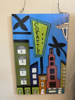 Seattle Painting On Wooden Plank$9Mountlake Terrace, WA