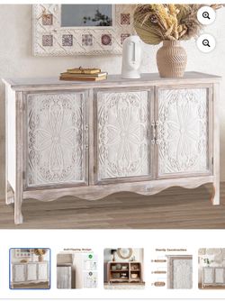 Accent Cabinet Rustic Storage Cabinet with 3 Carved Doors, Vintage Sideboard Buffet Cabinet$150Marietta, GA