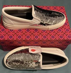 $258 Tory Burch silver/Snow White 47 carter slip on shoes 7.5$79Pembroke Pines, FL