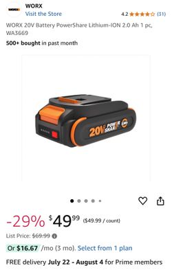 WORX 20V Battery PowerShare Lithium-ION 2.0 Ah 1 pc, WA3669$20Boca Raton, FL