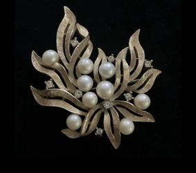 VINTAGE TRIFARI GOLD TONE FX PEARL RHINESTONE LEAF PIN BROOCH SIGNED$39Los Angeles, CA