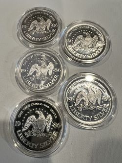 5x 1 Oz Fine Silver Rounds Liberty Silver Vintage 1986$470Hawthorne, CA
