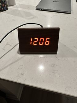 Wooden Alarm Clock, Modern Triangle Wooden Wood Alarm Digital Desk Clock, Displays Time Date Temperature Calendar, 7 Level Adjustable Brightness LED -$10Boiling Springs, SC