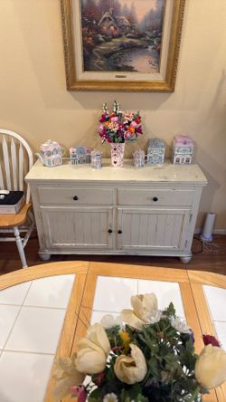 Kitchen Dining Table, Chairs, Hutch—White$220Highland, CA