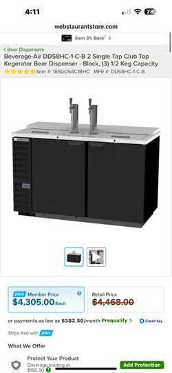 Beverage-Air DD58C-1-B Club Top Kegerator Beer Dispenser - Black, (3) 1/2 Keg Capacity$2,500Fresno, CA