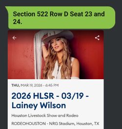 2 rodeo tickets for Lainey wilson tonight$220Houston, TX