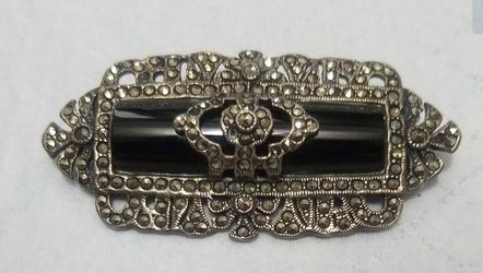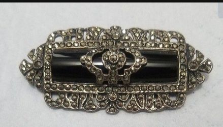 Art Deco Antique/Vintage Onyx And Stamped 925Silver Brooch$85Las Vegas, NV