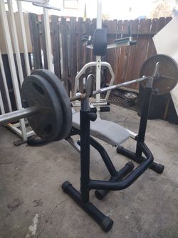 2 piece Olympic Bench press w Olympic Bar/1 Bench Press Curl Arm Stand w Leg Machine inc$250Arrowhed Farm, CA