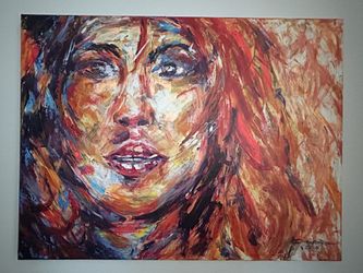 Modern Art Mounted Painting By Datfora - Orange, Woman’s Face $100Miami, FL