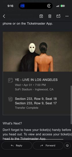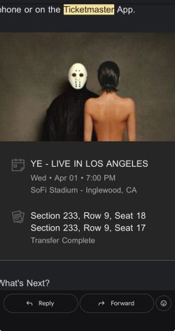 Kanye sofi stadium April 1- sec 233 row 9 seat 17-18$170Downey, CA