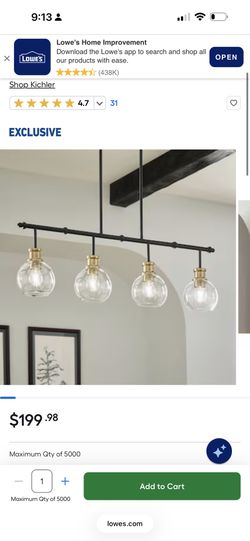Kichler Clove 4 -Light Black with Brushed Natural Brass Vintage Clear glass Linear Large Hanging Kitchen...$50Roseville, CA