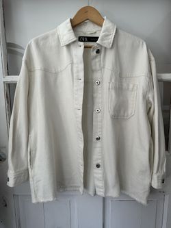 ZARA Frayed Hem Off White/Ivory Overshirt Button Down Jacket Women’s Size Small$35Virginia Beach, VA