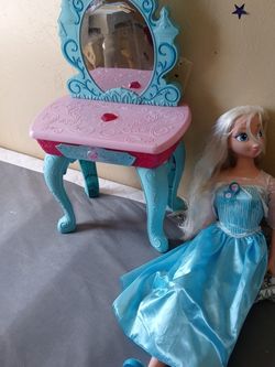 Frozen Elsa Huge Doll And Frozen Elsa And Anna Make Up Table$20Cape Coral, FL