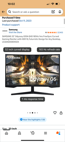SAMSUNG 32" Odyssey G55A Curved Monitor with HDR 10, Futuristic Design$300West Palm Beach, FL