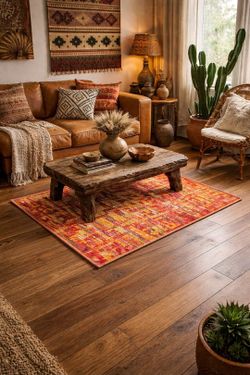 Hand-knotted Indian Sari Silk Rug - Abstract Gold, Red - 61" x 33.5"$299Woodstock, GA