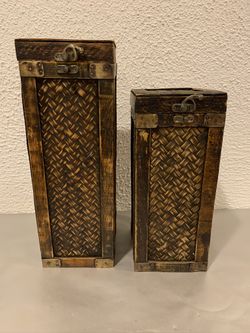 Two sizes wicker bottle holders, bottle box , wooden decorative bottle box 13.50” tall, 11” tall you see it here , it is available, can be purchased $25Pine Brook, NJ