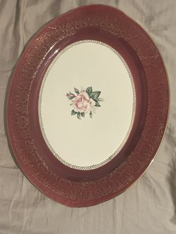 Vintage Homer Laughlin Lady Irene Oval Serving Platter-Maroon 22k Gold D52N8$65Porterville, CA