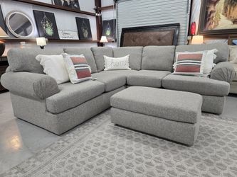 Gray Sectional w/ Rolling Ottoman ā Ready for Delivery$795San Antonio, TX