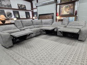 7-Piece Power Reclining Gray Leather Sectional ā Headrests + Consoles$1,695San Antonio, TX