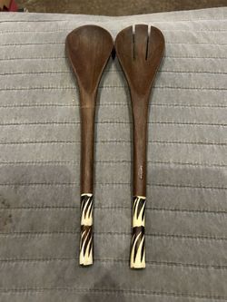 New, Batik Bone And Wood Spoon And Fork Salad Serving Set.$20Vista, CA