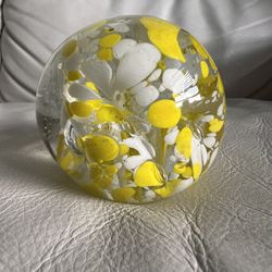 Hand-blown Art Glass Paperweight With Yellow and White Spatter$19San Antonio, TX