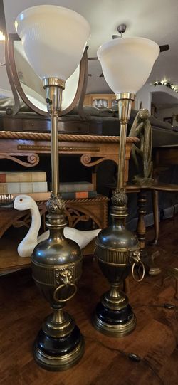 Pair Large Stiffel Torchiere Lamps Brass Lion $950Litchfield Park, AZ