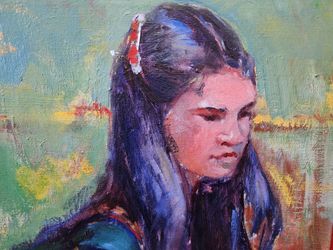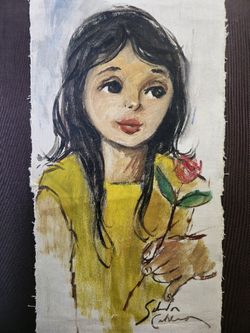 Original One-of-a-Kind Signed Salvador Cabrera Filipina with Flower Painting $340Seattle, WA