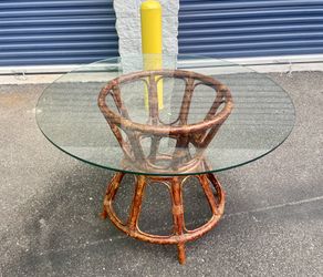 Mid-Century Modern Round Burnt Bamboo Glass Top Dining Dinette Table $350New York, NY