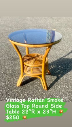 Vintage Rattan Smoke Glass Top Round Side Table $250New York, NY