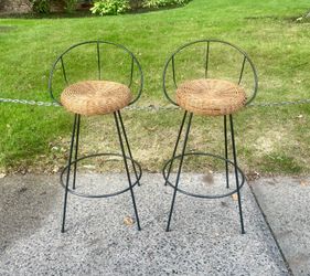 Pair of Mid Century Modern Iron & Wicker Bar Stools 35”H x 28”SH x 18”L x 17.5”D (Wicker needs TLC)$350New York, NY