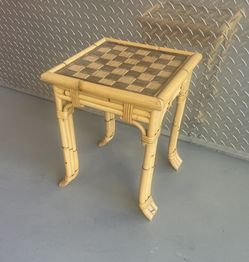 VINTAGE JOHN HUTTON FOR DONGHIA LEATHER BAMBOO & RATTAN SIDE TABLE $900New York, NY