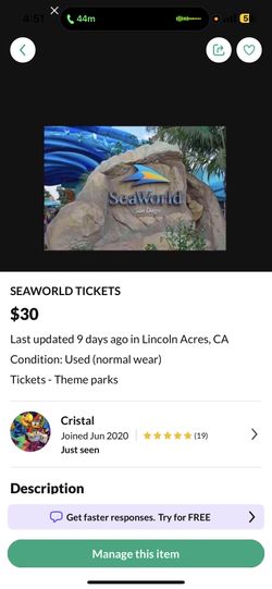 SEAWORLD $30Lincoln Acres, CA
