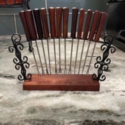 Vintage Cocktail 12 Pc Set With Stand Stainless Steel Wood Handle Japan Made $10Virginia Beach, VA