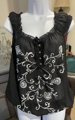Black Sleeveless White Embroidered Top Sz Small$5Fort Lauderdale, FL