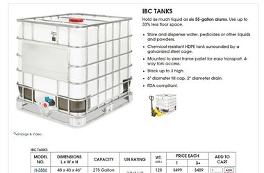 275 Gallon IBC Water Tanks$120San Bernardino, CA