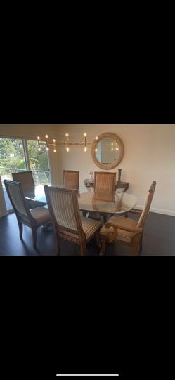 Ornate pedestals glass top dining table And six chairs $600Mountain View, CA