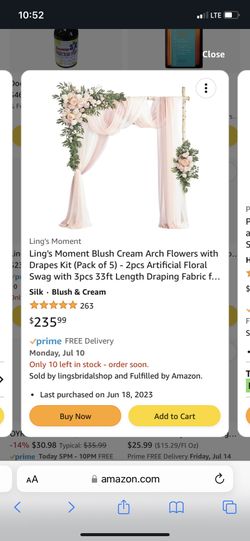 Wedding Arch Flowers with drapes- Ling’s Moments$200Federal Way, WA