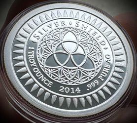 2014 1oz Silver Shield/Golden State Mint .999 Silver Half-Proof Round $100San Marcos, CA