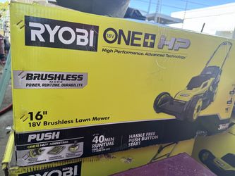 NEW OPEN BOX RYOBI 16 INCHES 18 V BRUSHLESS PUSH LAWNMOWER IS AN ORIGINALBOX INCLUDES TWO 2Am LITHIUM BATTERIES WITH FAST CHARGER GRASS CATCHER. IT'S$185Fort Lauderdale, FL