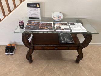 Wooden Steel Glass Topped Table$100Gilbert, AZ