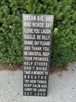Black sign with encouraging words 11 1/2” wide by 35 1/2” tall. Dream Big, be Kind, Breathe$15Fort Wayne, IN