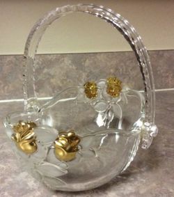 Vintage Mikasa Clear Basket Gold Roses Frosted Leaves Decor $10Virginia Beach, VA