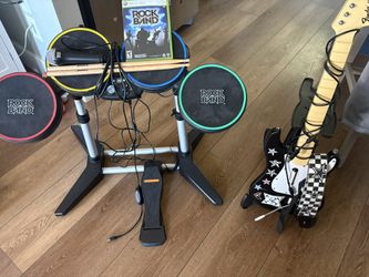Rock Band Xbox 360 COMPLETE Band Kit — Drums, Guitar, Mic, Game$300Poway, CA
