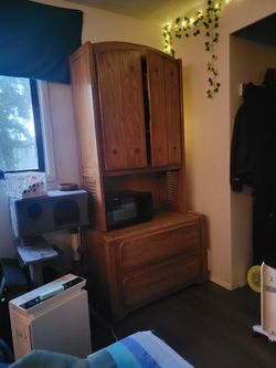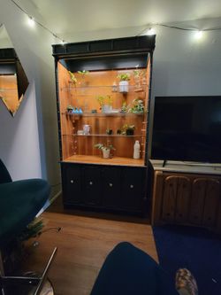 Dark Green Solid Wood Hutch With Glass Shelves And Grow Lights$75Lynnwood, WA
