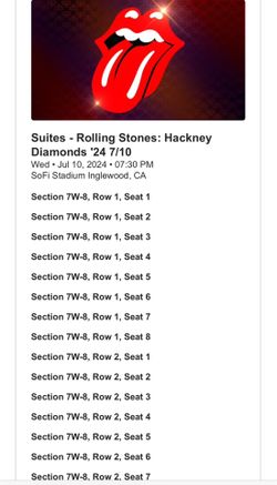 THE ROLLING STONES VIP SUITE TICKETS $200Los Angeles, CA