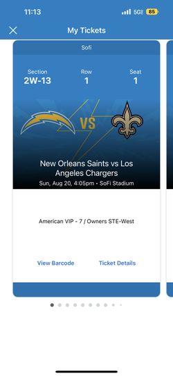 CHARGERS VS SAINTS OWNERS VIP SUITE$200Los Angeles, CA