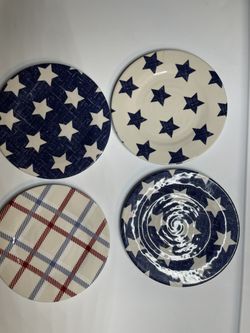 Patriotic Melamine Outdoor Plate Set 4th of July Stars & Plaid$5Hacienda Heights, CA