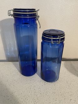 Vintage Cobalt Blue Glass Clamp Lid Canister Jars Glass Storage$50Hacienda Heights, CA