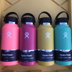 Hydro Flasks (NEW)32 oz (946mL)Wide Mouth with Flex Cap in colors Hibiscus(Light Orange), Watermelon π, Sunflowerπ», Spearmint (Light Green) $30 Each$30Gilroy, CA