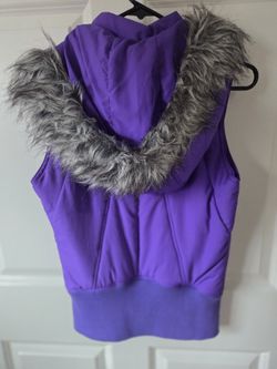 Lorna Jane Purple Hooded Vest with Removable Faux Fur Trim, Size S$45Kent, WA